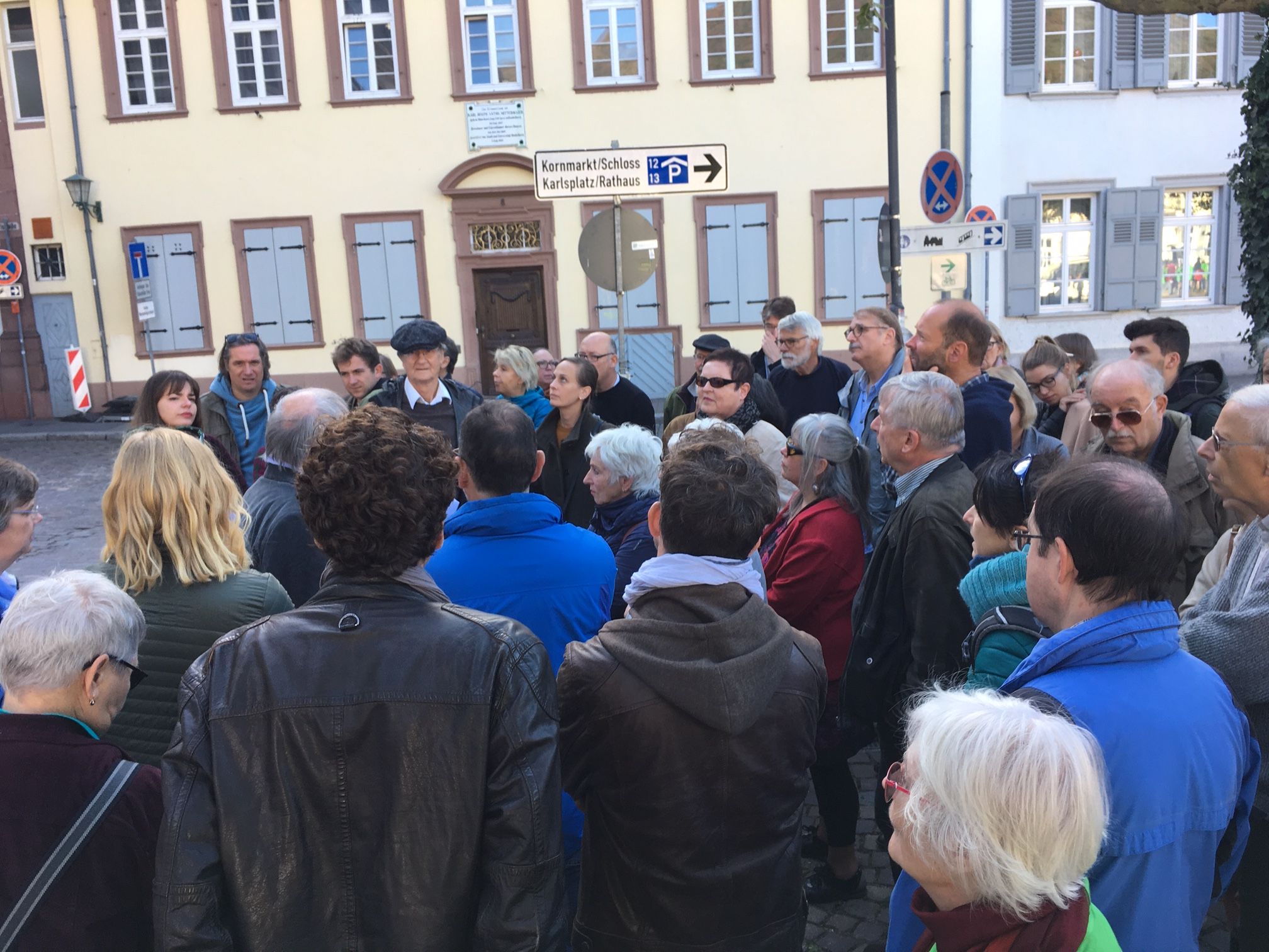 22.10.2018  eb/awl   Bei herrlichem Herbstwetter mit vielen Beteiligten ging es am Sonntag auf einen Rundgang durch die Kern-Altstadt mit der Kunsthistorikerin Dr. Katharina Weiler und den Stadträten Hans-Martin Mumm (GAL)  und Dr. Arnulf Weiler-Lorentz (Bunte Linke). Gelungene Beispiele von Neubauten, aber vor allem Bausünden der Vergangenheit wurden angesprochen.